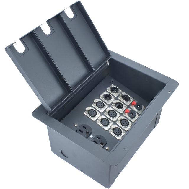 This item advance mcs electronics pro audio recessed stage in floor pocket box black with prewired connections.